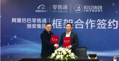 DB真人集团运营中心总裁许水深(左)与阿里巴巴集团副总裁、零售通事业部总经理林小海(右)